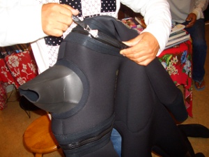 去年のバックジップタイプでも非常に暖かく十分に完成度の高いものが出来たと感心していたのですが、今年はさらにユーザーにありがたい進化を遂げました。ジップの一人での開閉に関しては、こういうジップタイプを始めて着たので少し戸惑いましたが、手順に慣れれば全く問題なしです。一人で動くサーファーには心強い味方であります。また、構造上いたしかたないバックジップで感じるファスナーの存在感もなく、よりパドリングもしやすいのではないかと思います。気になった点と言えば、しいてあげれば外見で多少背中から首周りのあたりが多少盛り上がる程度のところでしょうか???
