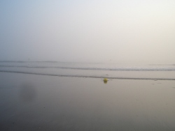 茨城、H海岸。濃霧で波が見えませんが、非常にメローなコシぐらいの波が割れております。