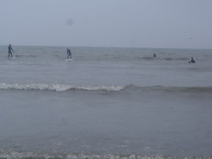 最初は皆ドボドボ、ボチャボチャ面白いように撃沈します。。。(笑)しかし、少しこなれてきて波を追いかけることができると・・・小波ながら今まで味わったことのない浮遊感を感じながら波に乗ってインサイドへ・・・ 「ヤバい! 面白すぎ!」誰かが呟きました。そこから4時間皆時間を忘れて遊びます。終わる頃には私は足をつっておりました。(笑)かなり楽しい!これは全員の一致した意見。私も平水面のSUPをメインにしてやっていくつもりですが、海のSUPは相当に楽しいですので既存のサーファーのお客様には海SUPもおおいに奨めていこうかと思いました。そして、かなりのトレーニング効果が期待されます。常に波の上でバランスをとっている為相当に体幹が鍛えられる上、波を追いかけてハードにパドルを漕ぐことで全身運動に繋がります。なぜSUPを本格的にやっている人が無駄な贅肉がついていないかも頷けました。初体験の佐久間プロもSUPの可能性には目を見張るものがあると感じていたようです。